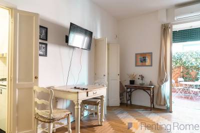 The apartment is located in an incredible neighborhood, only walking distance to the breathtaking St. Peter’s Basilica and the Vatican City. In this elegant area most of the world-famous landmarks are concentrated within walking distance. Get lost in the narrow streets of this area, full of restaurants, supermarkets, and shops of any kind. Reaching other parts of the city will be extremely convenient since it is well connected with public transportation, thanks to bus (64, 982) train (FL3, FL5) and to metro A, next to the apartment.